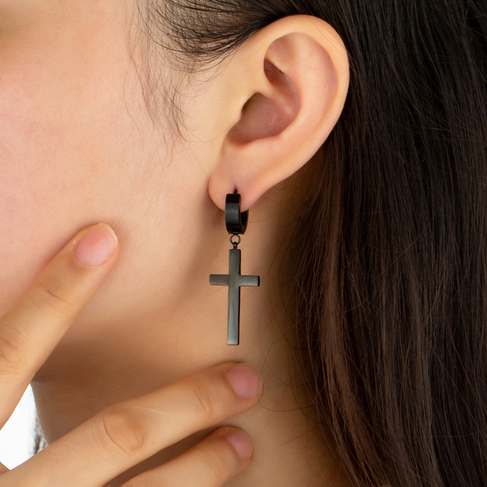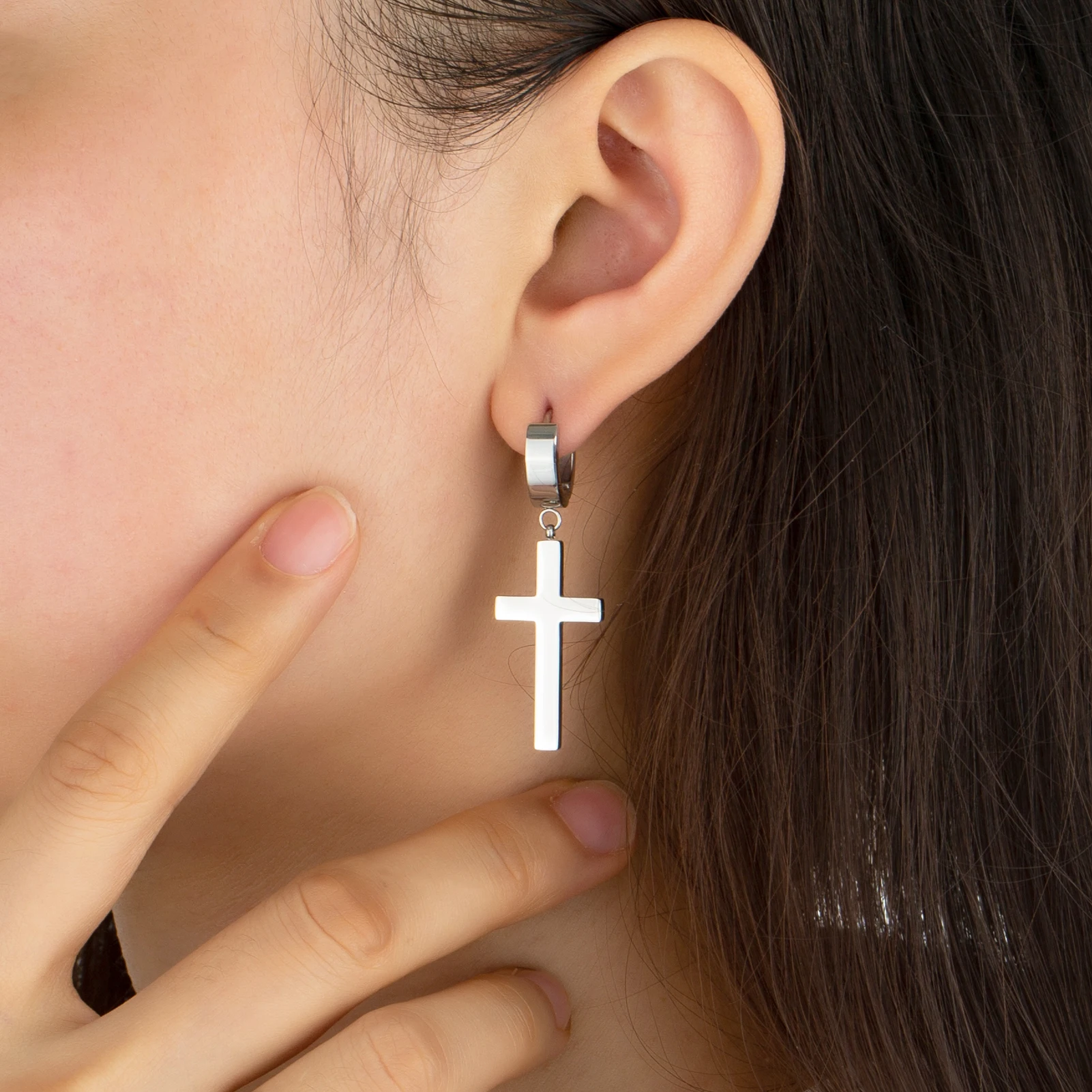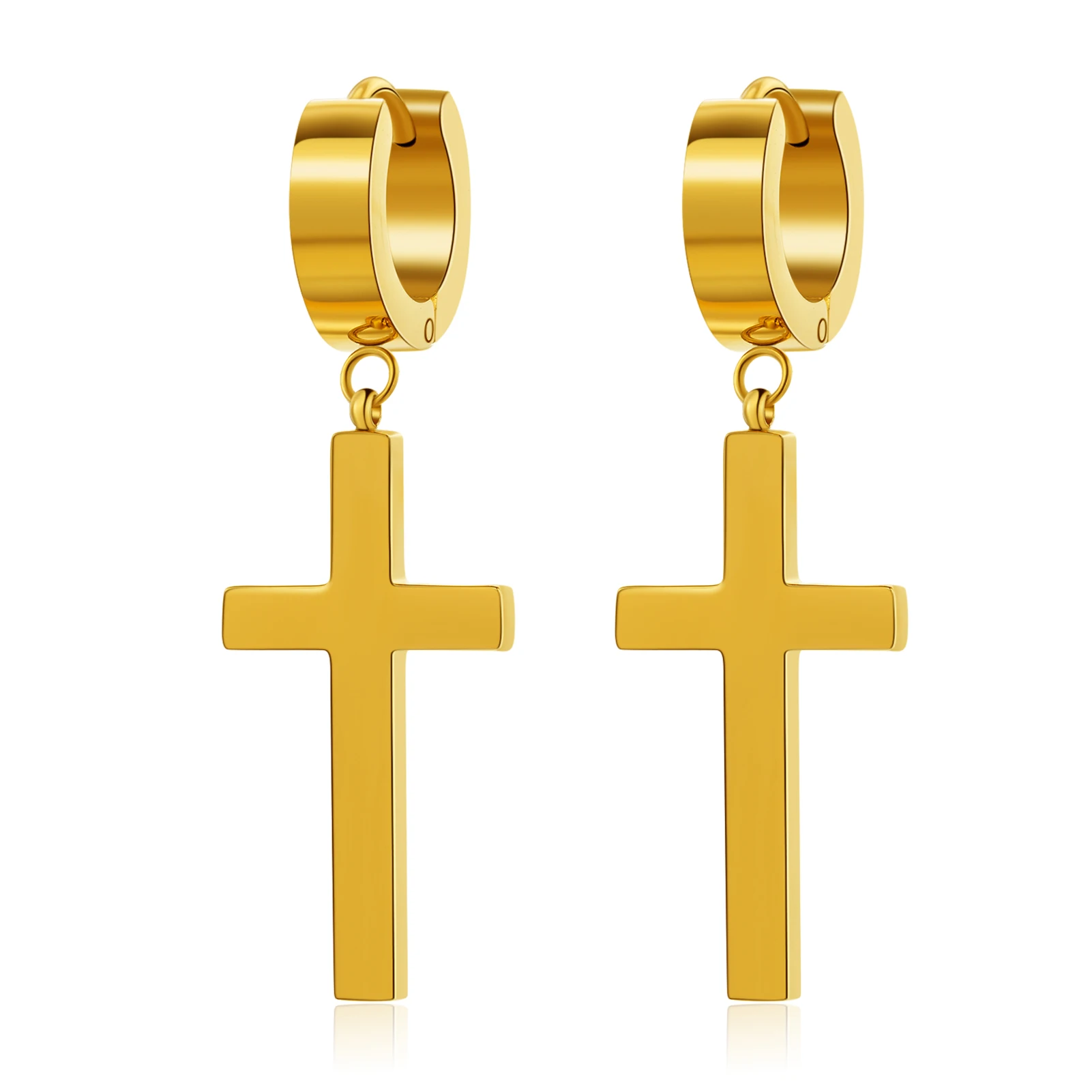 18K Gold Plated Cross Dangle Earrings - Waterproof Sweatproof Stainless Steel Drop Earrings for Men Women Fashion Jewelry
